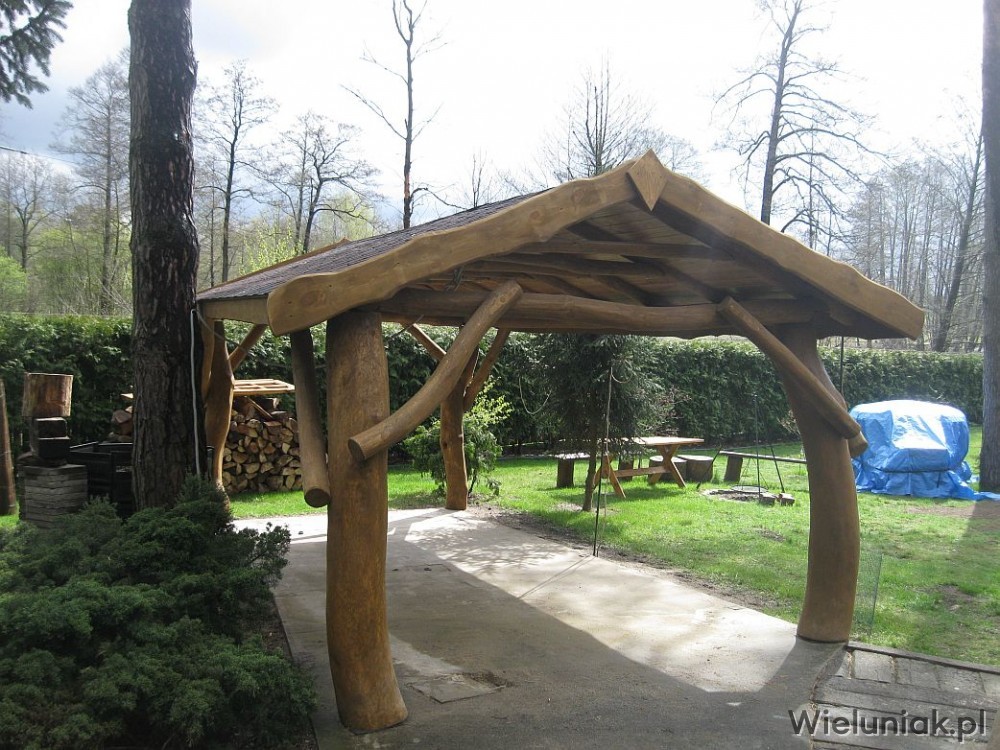 1. Elementy altany wykonane z pni drzew korowanych, suchych, wyszlifowanych, zaimpregnowanych.