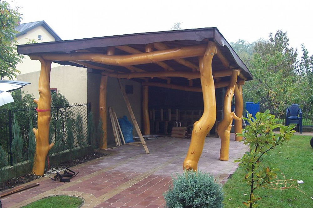 1. Elementy altany wykonane z pni drzew korowanych, suchych, wyszlifowanych, zaimpregnowanych.