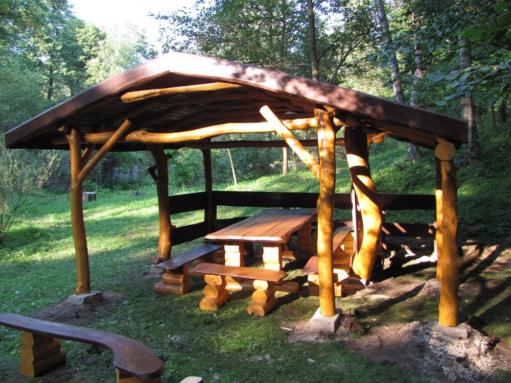 7. Miecze wspierające altanę wykonane z okrąglaków.