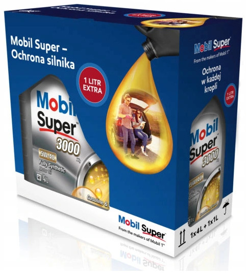 Oleje Mobil Super™ 3000 mają ustaloną markę w branży, tak więc stosujący je kierowcy mają gwarancję optymalnego działania silnika w swoim pojeździe. Mobil Super 3000 X1 5W-40 zapewnia: