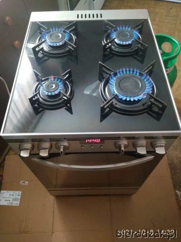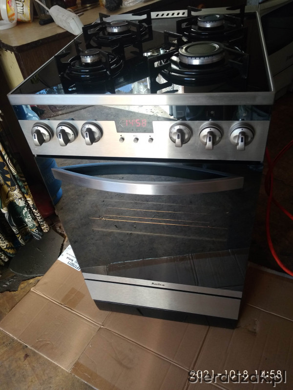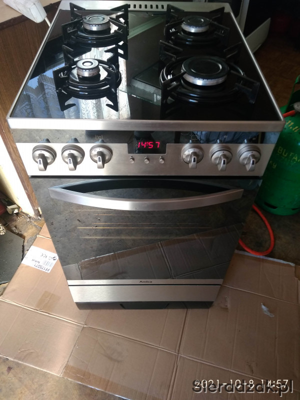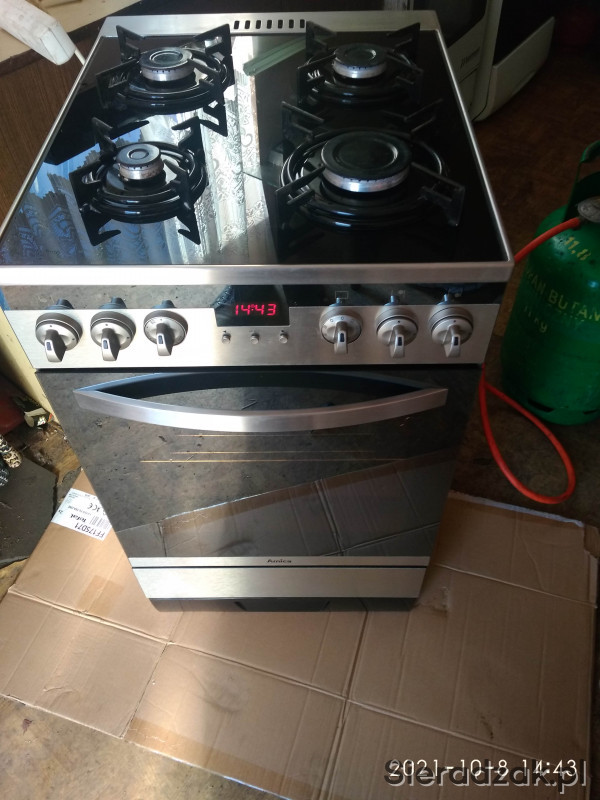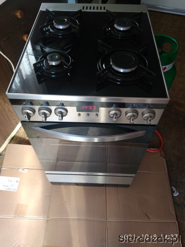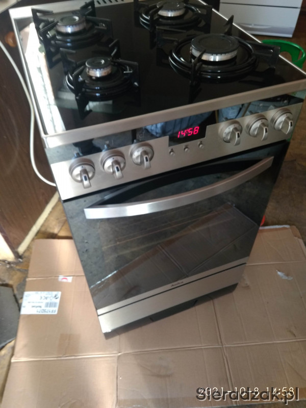 Sprzedam ładną widoczną na zdjęciach sprawna kuchenkę gazowo-elektryczna INOX góra czarne szkło