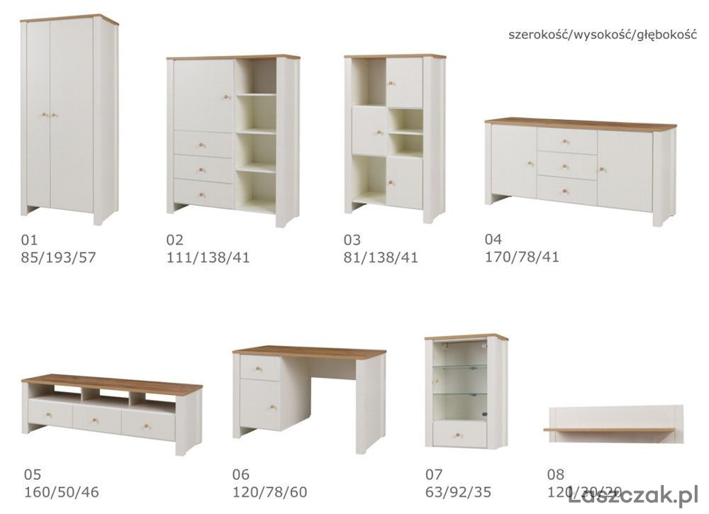 Wszystkie meble z zestawu można zamówić oddzielnie.