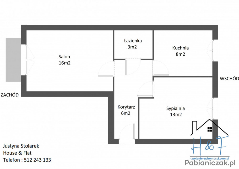 Powierzchnia mieszkania to ponad 46m2, z ekspozycją okien wschód- zachód.