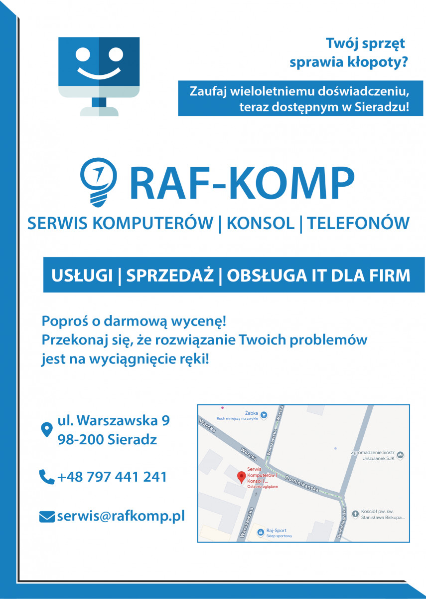 Chcesz mnie zweryfikować? Znajdź mój serwis w Google pod hasłem Raf-Komp Rafał Żórawski i przekonaj się, co sądzą o mnie moi klienci.
