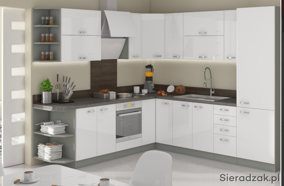 ZESTAW- Kuchnia Bianka(bialy polysk), GRAY(zsary polysk), Karmen(kremowy polysk) - narożna 260 / 270 cm z BLATEM 38mm. - 3995 zlotych.