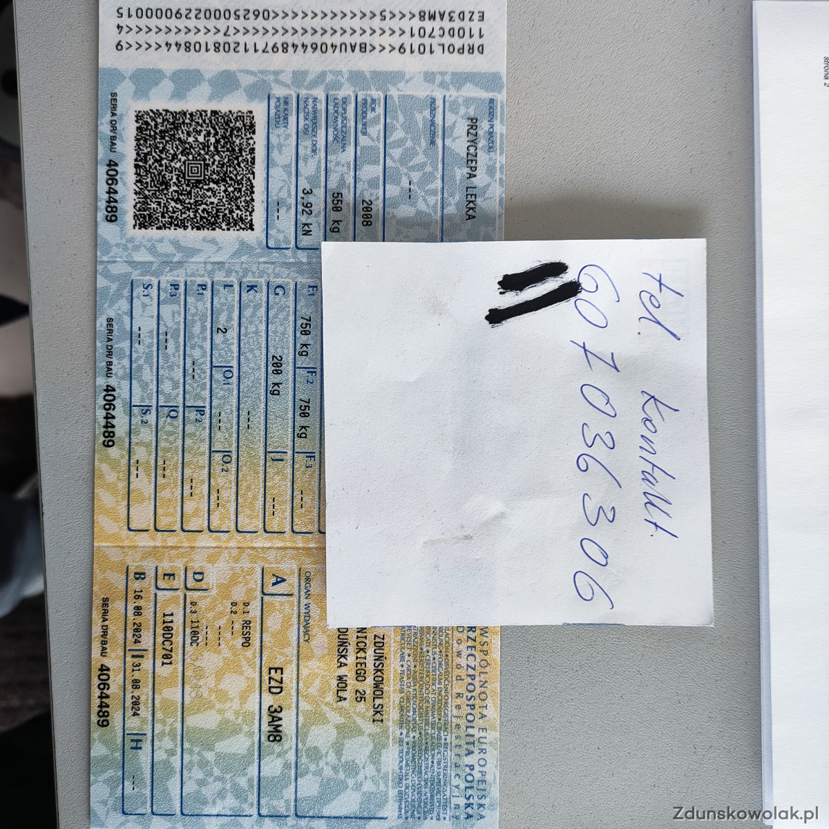 Jak w tytule do sprzedania przyczepa lekka 1 osie. Opłacone OC na rok do listopad 2026, zarejestrowana BT- bezterminowe masy widoczne na foto dowodu. Nowy zaczep,odnowiona instalacja działająca w 100%. Otwierana i tyla burta tylna zdejmowana,koło zapasowe, niski załadunek. Oś na niezależnych resorach. Wymiary przestrzeni ładunkowej dł.=2,18m, szer.=1,2m, wys. burt=0,35m. DMC 290 kg. ale może to być plus bo można zapiąć do mniejszych aut co na haku mają mniuej??? !! A i tak przewiezie więcej!!!!? Stan oceniam na dobry gotowa do pracy. Wszelkich dodatkowych info. udzielę tel.