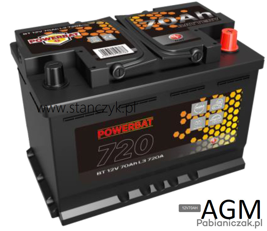 AKUMULATOR POWERBAT 12 V 70Ah 720 A AGM START-STOP