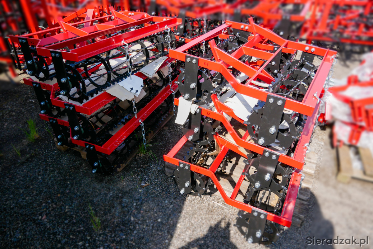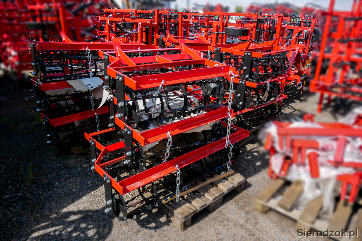 Witam! Na sprzedaż posiadamy własnej produkcji agregaty uprawowe o szerokości roboczej: 2,1m, 3,2m, 3,6m, 4,2m, 4,6m. Agregaty są prostej konstrukcji, wyposażone w automatyczną belkę zaczepową i malowane proszkowo.