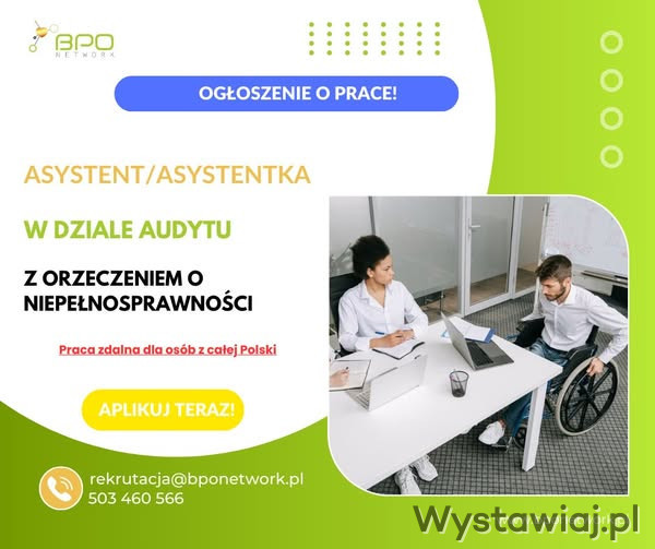 Asystent/ka w dziale audytu z orzeczeniem o niepełnosprawności