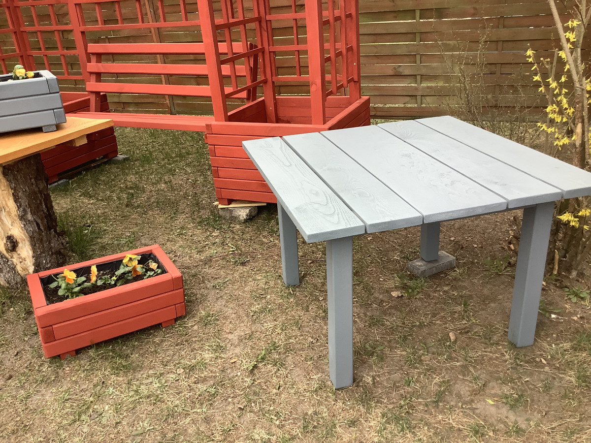 Meble ogrodowe malujemy ręcznie wysokiej klasy impregnatami, które posłużą przez wiele lat.