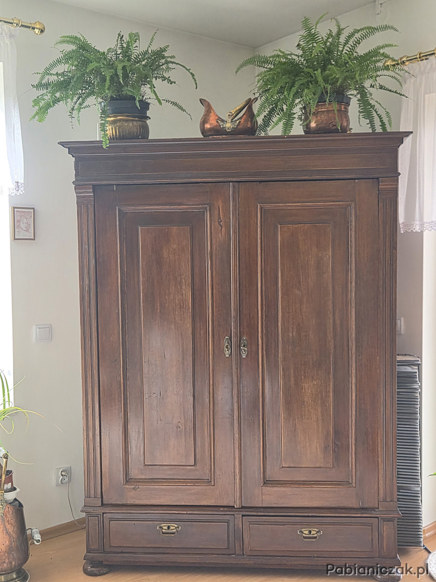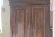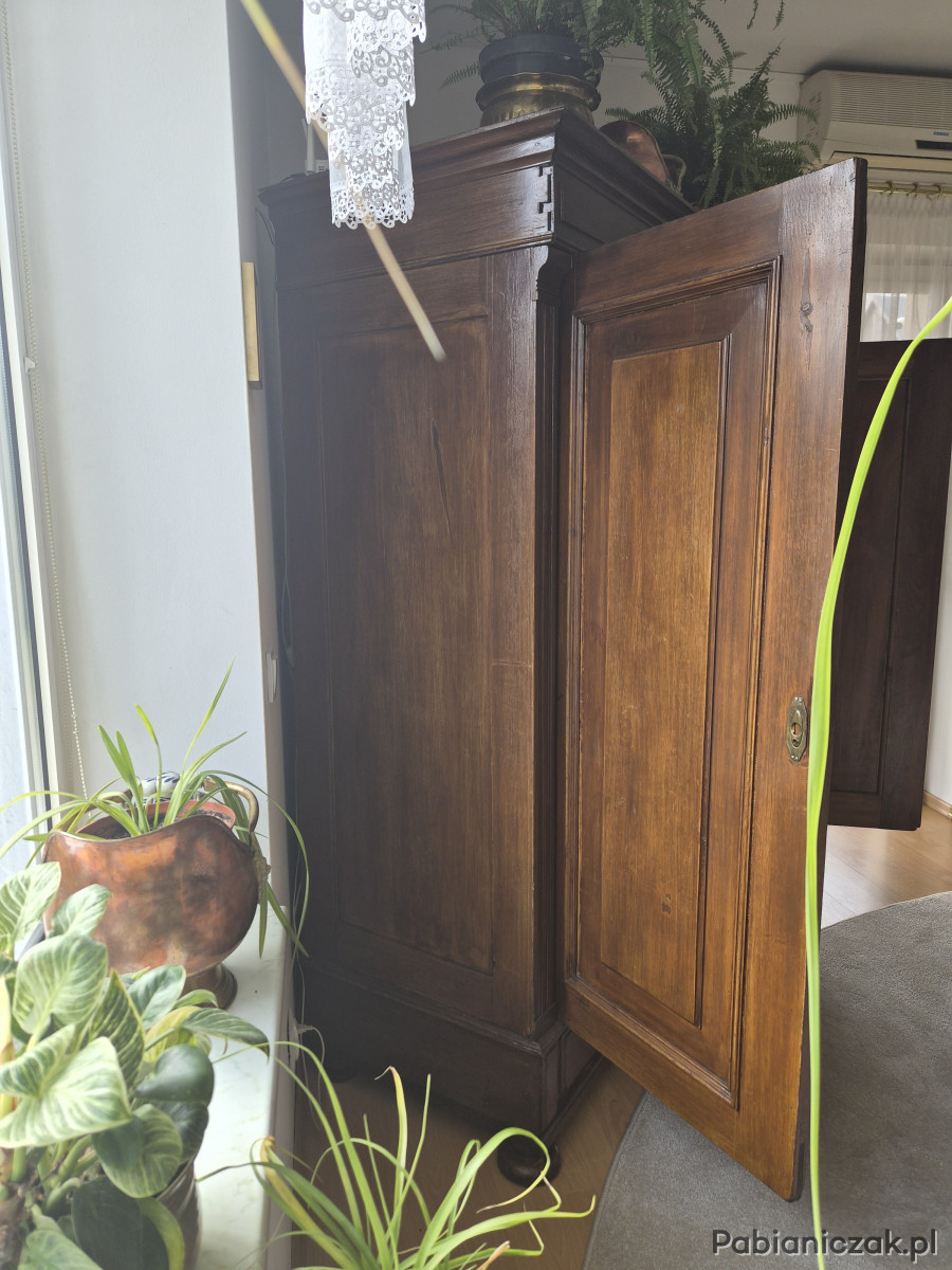 Szafa drewniana ok 100 letnia w dobrym stanie. Składana na wpusty bez wkrętów i gwoździ. Wymiary: wys. 190 cm, szer. 140 cm, gł. 60 cm.