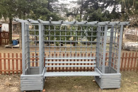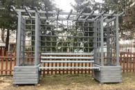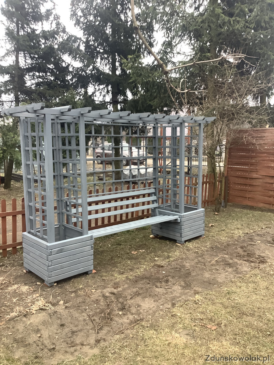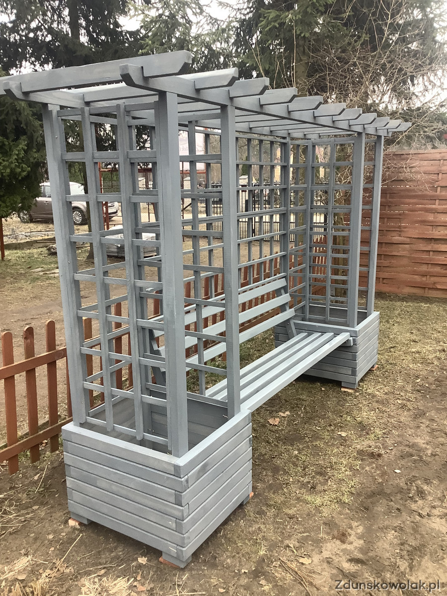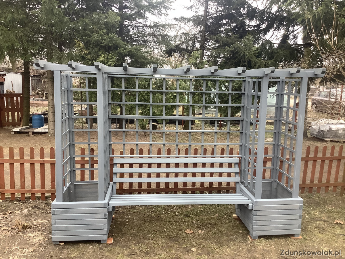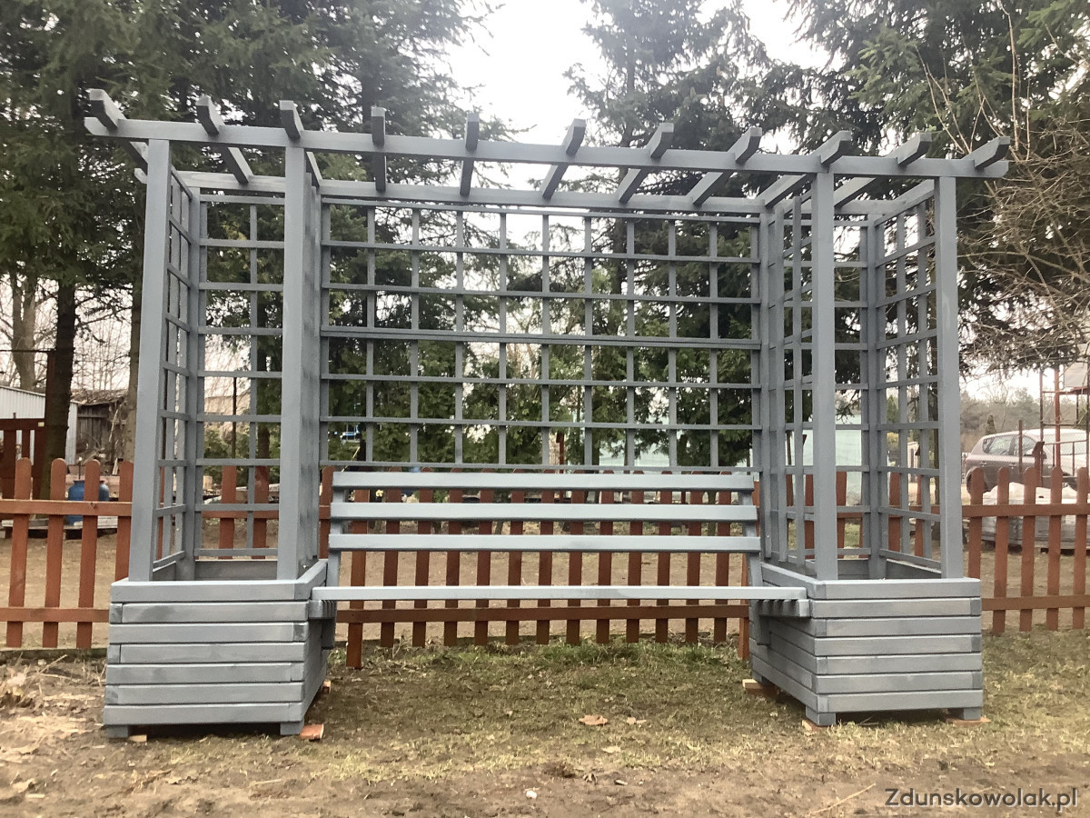 Pergola ogrodowa z donicami i ławką w kolorze njord nordyckie klify.
