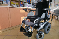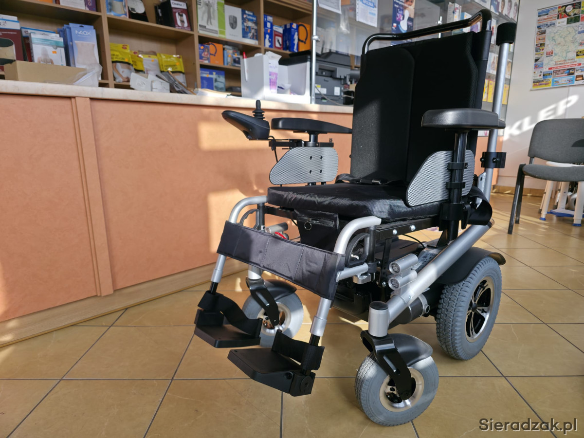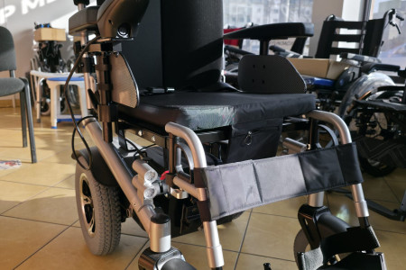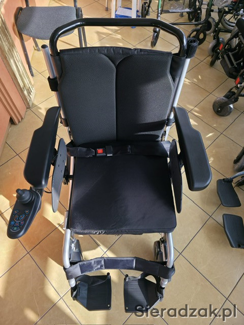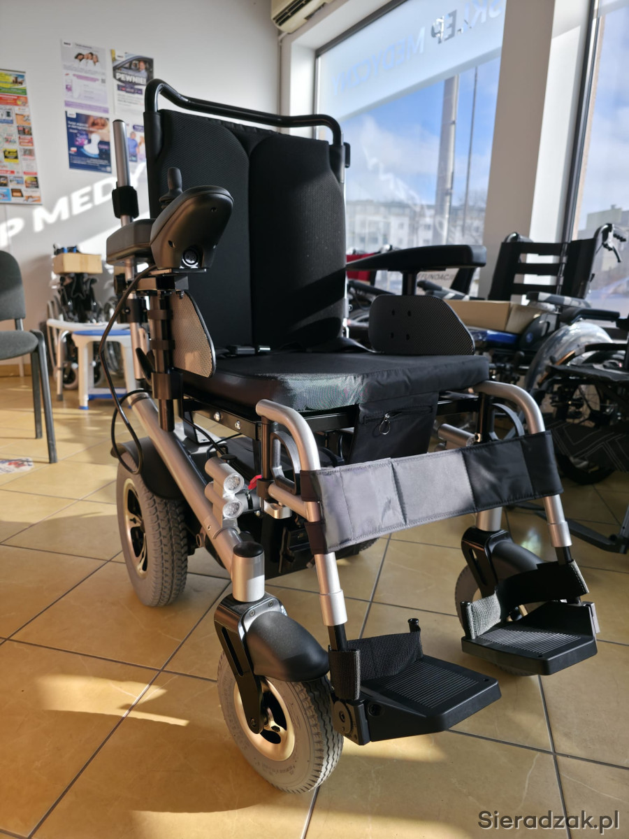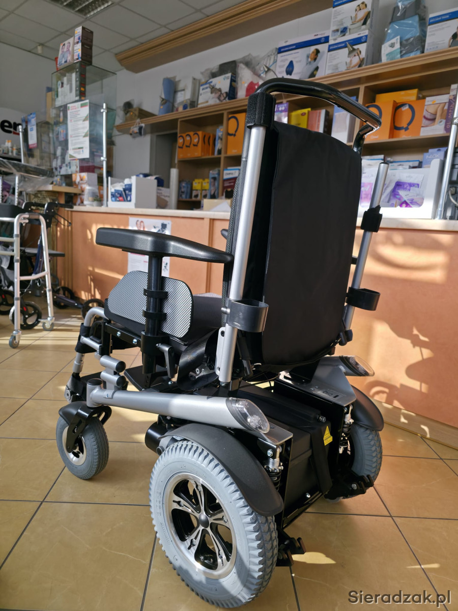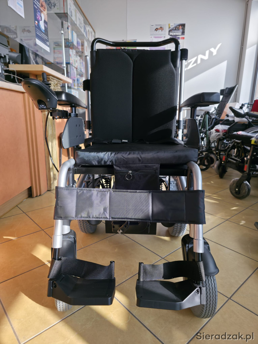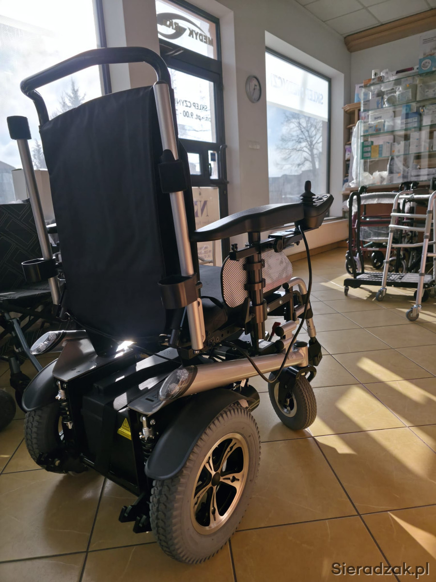 dostępne opcje płatne: regulowane pod kątem podnóżki, uchwyt na kule, możliwość przełożenia jednostki sterującej dla opiekuna, zagłówek