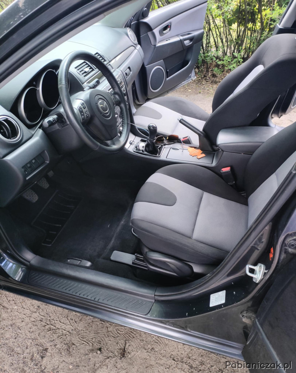 Mazda 3 z 2007 roku po face liftingu z niezawodnym silnikiem 1.6 MZ-CD (diesel) o mocy 109 KM (80KW). Samochód użytkowany prywatnie przeze mnie od 2018r. regularnie serwisowany, parkowany pod wiatą. Stan techniczny: • Silnik wymieniony regenerowany w 85% pracuje równo, nie bierze oleju, bardzo oszczędny, niestety należy zregenerować turbinę, • Zawieszenie w dobrym stanie, nic nie stuka ani nie puka. Ostatnio przeprowadzone naprawy: Przebieg 226980 • wymiana filtra oleju, paliwa • wymiana koła pasowego wału korbowego • wymiana kompletna rozrządu • wymiana paska micro-v Przebieg 232980 • regeneracja turbosprężarki • szlif wału korbowego • wymiana panewek • wymiana pompy wysokiego ciśnienia paliwa • wymiana pompy oleju • wymiana wysprzęgnika, operatora centralnego sprzęgła, koła zębatego rozrządu • klocki hamulcowe przód/tył • wymiana wałków rozrządu, napinacze, łańcuch międzywałkowy, usczelniacz wałka Przebieg 242080 • filtr paliwa, preparat do czyszczenia układu paliwa • filtr powietrza, oleju, kabiny • wymiana czujnika położenia wału korbowego. Stan wizualny: • Wnętrze czyste i zadbane, • Lakier w dobrym stanie normalne ślady użytkowania, przetarcie z lewej strony na tylnim zderzaku, zabezpieczono podwozie farbą okrętową. Wersja z bogatym wyposażeniem: • Klimatyzacja. • Tempomat, • Radio z odtwarzaczem i zmieniarką CD, oraz AUX (na iPhone do 4) • Zestaw głośnomówiący Bluetooth • Multifunkcyjna kierownica, • Felgi stalowe z zimowymi oponami, • Wspomaganie kierownicy, • 4x Elektryczne Szyby, • Elektryczne Lusterka, • Centralny zamek, • ABS, • ASR, • ESP, • Poduszki Powietrzne. Dodatkowe informacje: • Badanie techniczne: do 08.04.2027r., • OC: do 25.04.2026r., • Nowy markowy akumulator YUASA wymieniony w lutym 2025r., zregenerowano również alternator, • Olej silnikowy i filtry – wymiane w zeszłym roku. Sprzedaż prywatna.