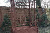 | Pergola ogrodowa z ławka, donicami i łukiem lokalizacja: powiat Bełchatów |